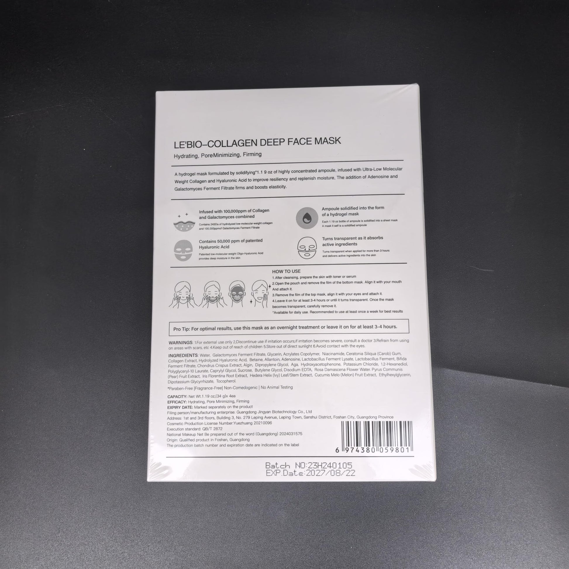 - Quick hydration—This bio-collagen deep mask is gentle and moisturizing, and can quickly hydrate the skin. The mask is designed to meet daily skin hydration needs