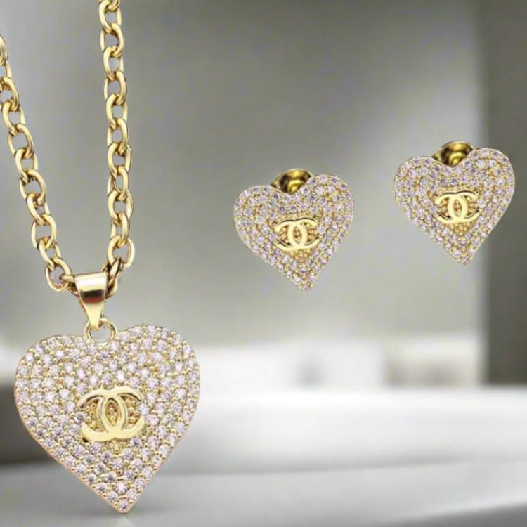 Jewelry Set, 2 Piece Necklace and Earrings Set, Logo Design, Luxury Fashion Accessories